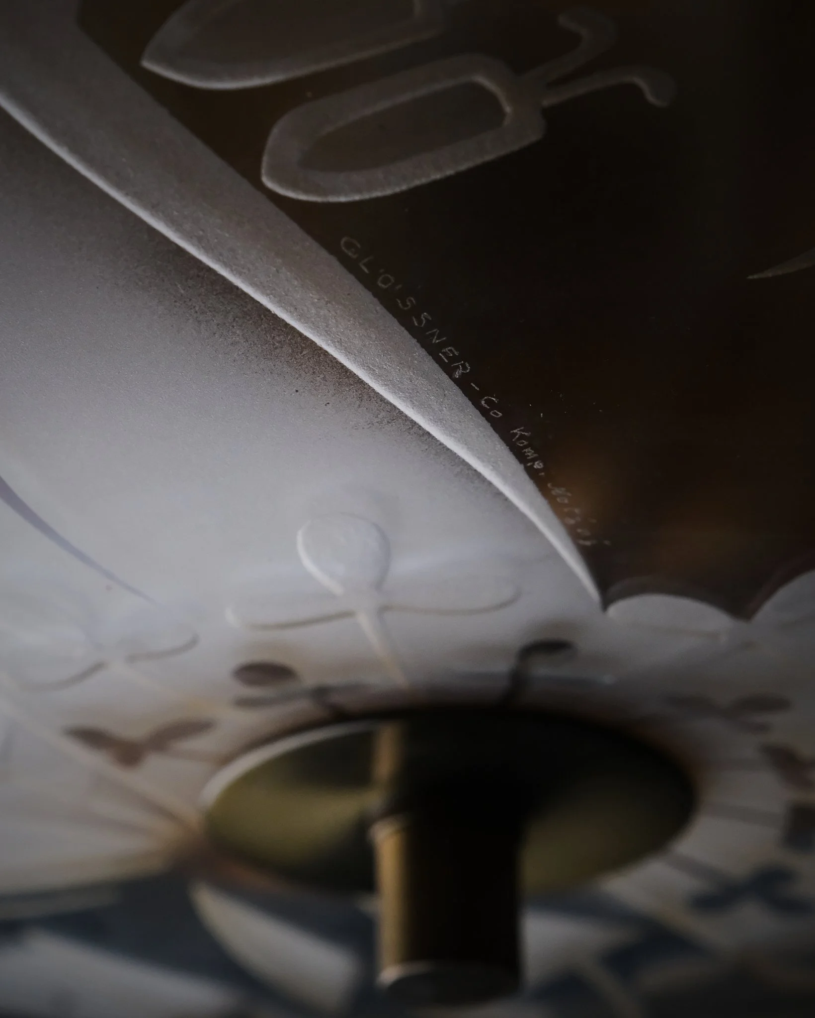 A rare and elegant ceiling light designed by Bo Notini for Glössner & Co in Sweden during the 1940s.