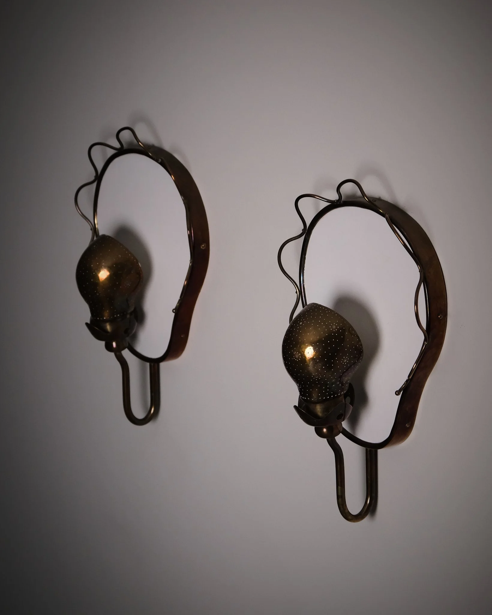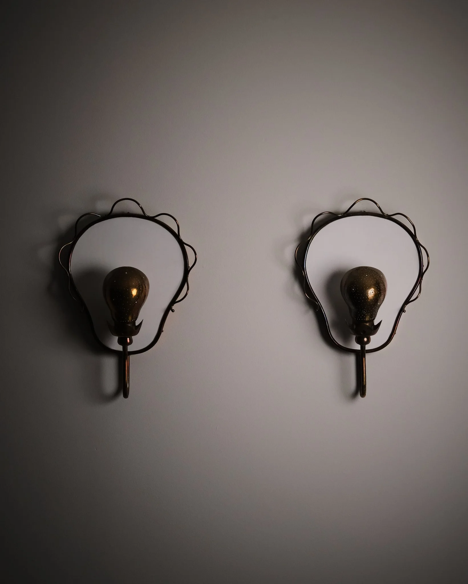 Pair of wall lamps, unknown designer, Sweden, 1940s
